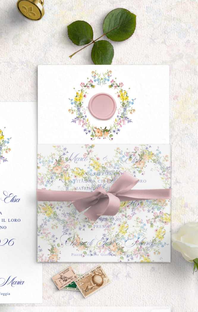 Scegli gli accessori (vellum, nastro, sigillo in ceralacca, fiori secchi, eccetera)